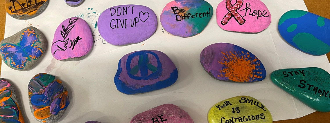 Employees come together to paint rocks and create positive messages